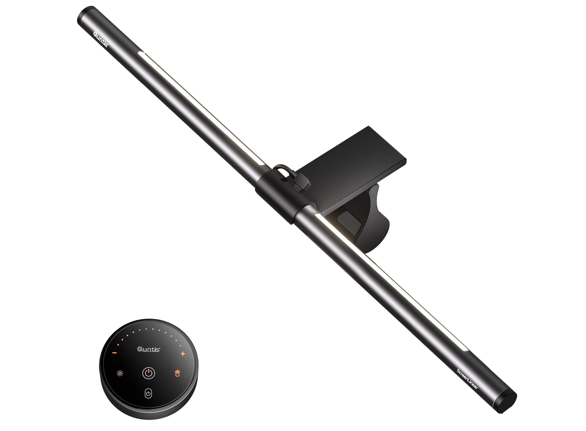 And last week, my third and most-feature rich lamp of this type arrived in the mail, also made by Quntis1Quntis sent me this lamp to review, at no cost to me, but this review is not sponsored, I’m not a Quntis affiliate, and Quntis has no input on this review. As always, I’ve made this review as objective as possible. This lamp is the Quntis Screen Linear RGB Pro+, with a puck-style desktop remote control… and at about $50, it costs about half as much as the BenQ.